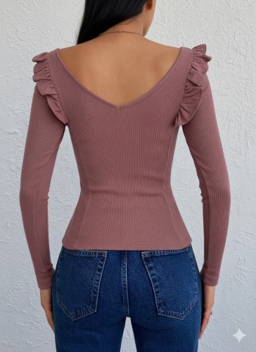 • Kadın omuz fırfır detay uzun kollu bluz